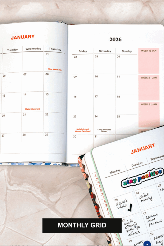 - Canvas pouch to keep & carry the planner safely
