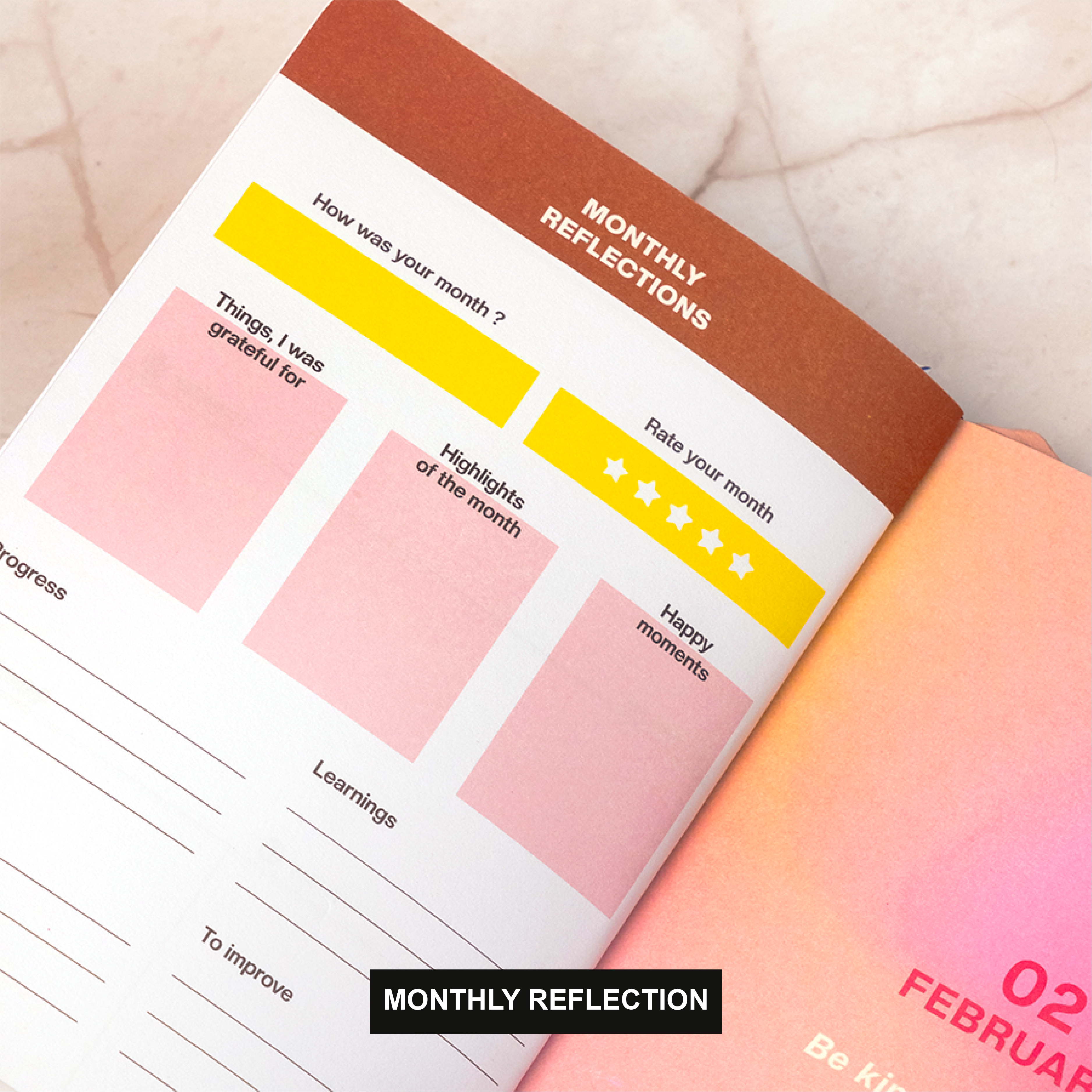 - Pages for monthly reflection